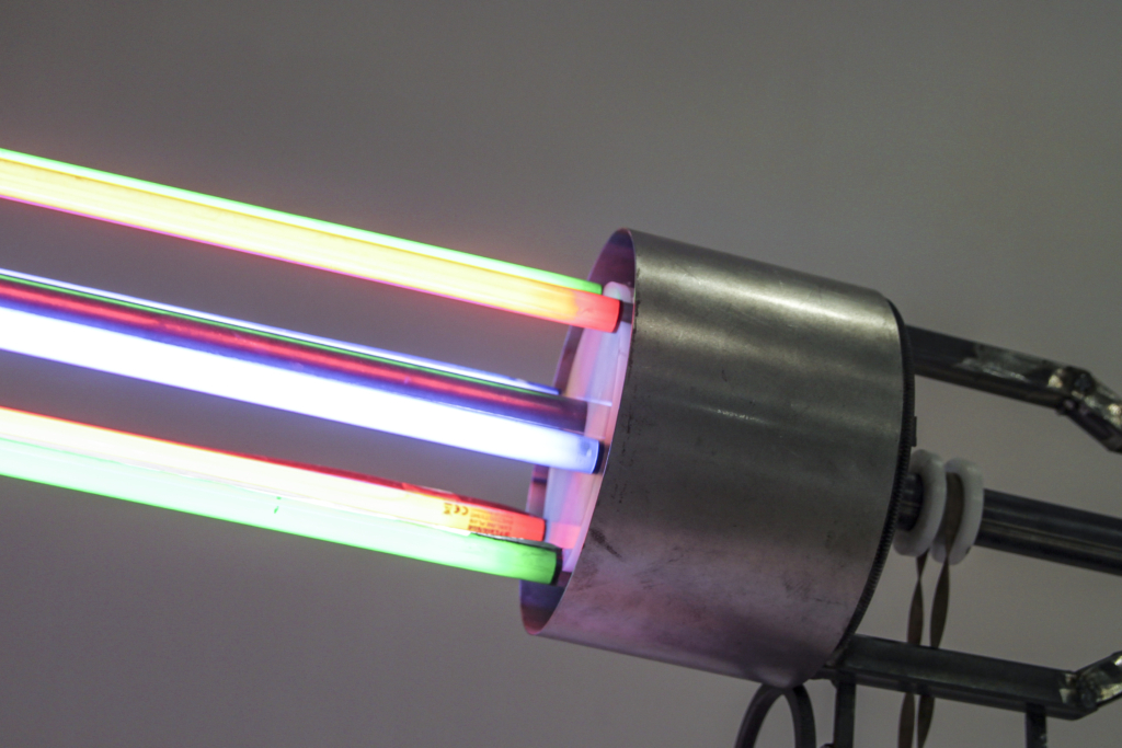 Acier, moteur, tubes fluos, filtres chromatiques,