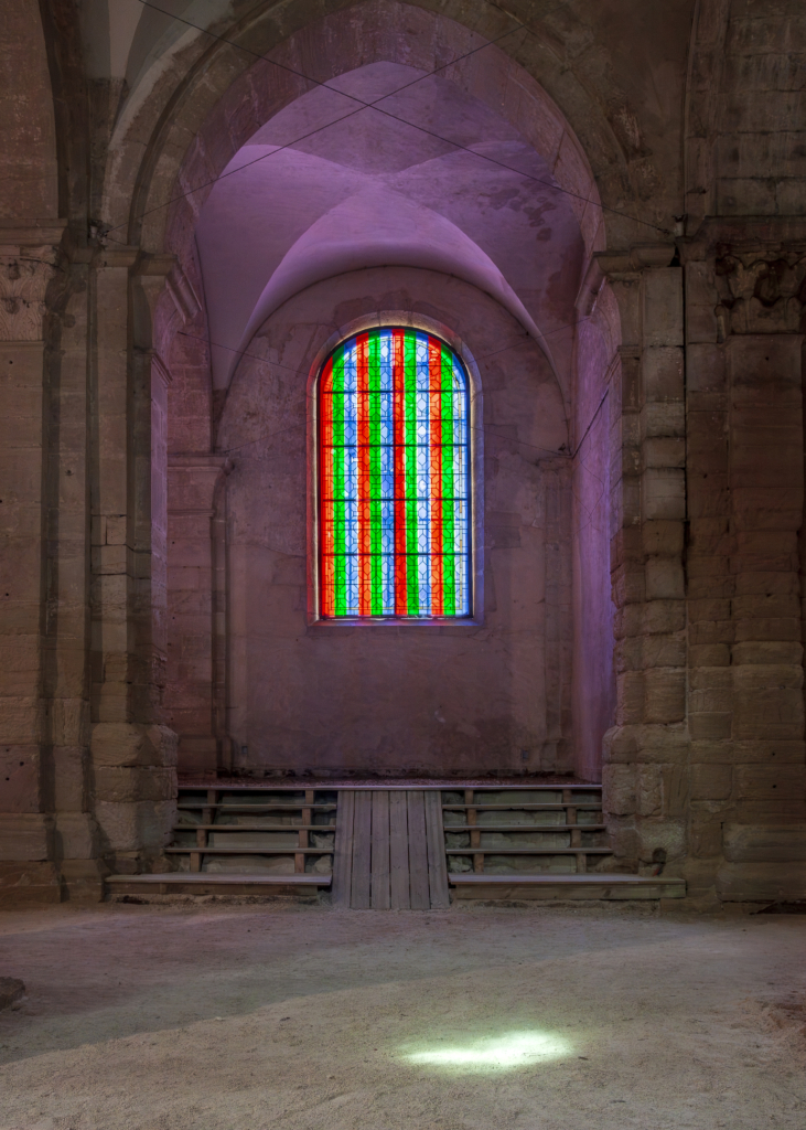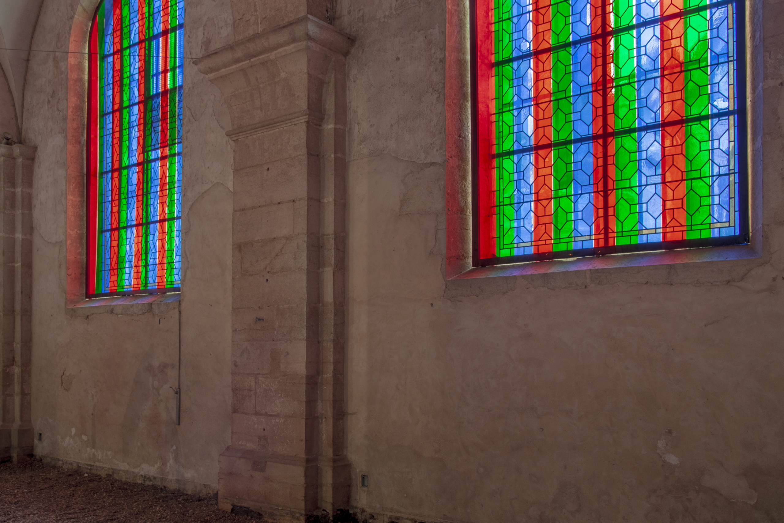 Passeurs Couleur réinterprète le vitrail comme dispositif proto-technologique: l’une des premières formes d’écran sur support translucide conçu pour donner à voir, par la lumière, des images destinées au regard collectif.