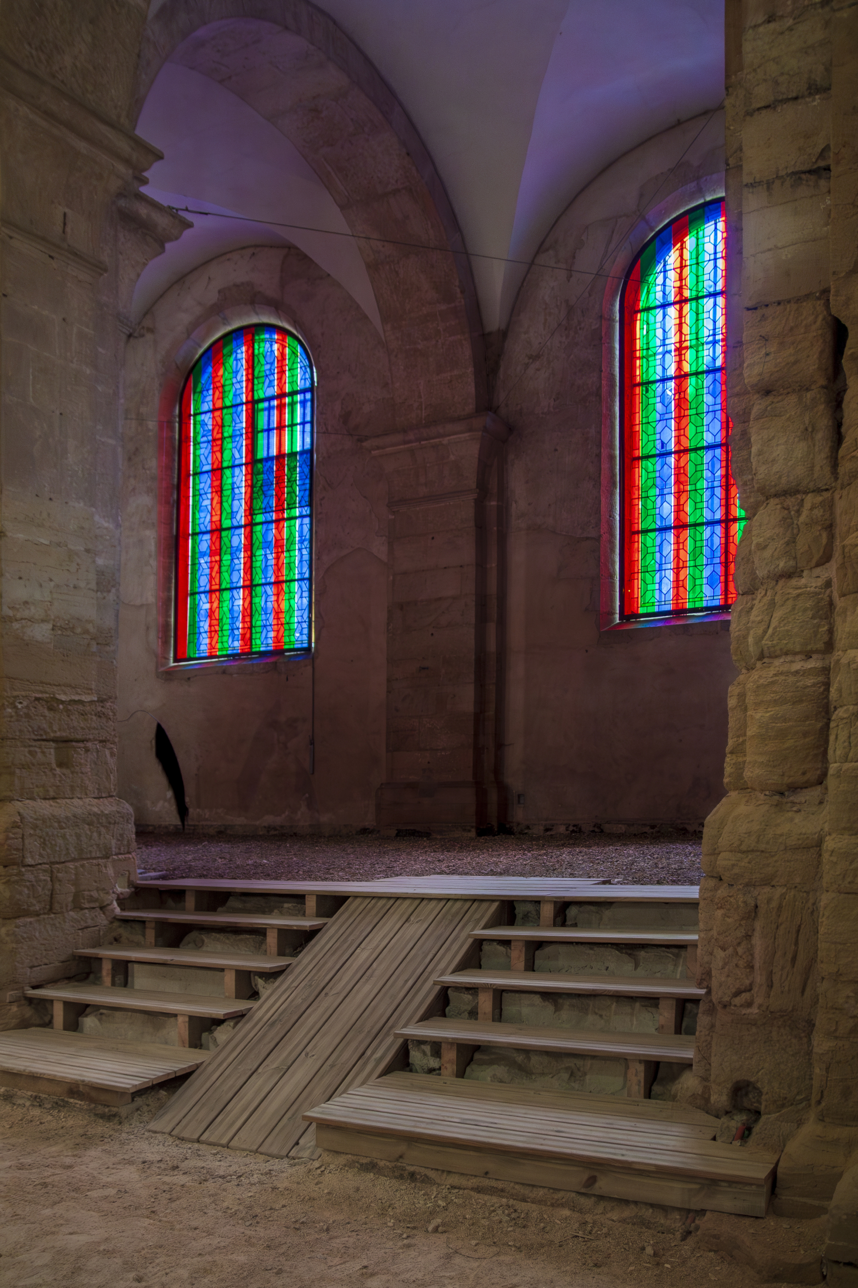 Passeurs Couleur réinterprète le vitrail comme dispositif proto-technologique: l’une des premières formes d’écran sur support translucide conçu pour donner à voir, par la lumière, des images destinées au regard collectif.