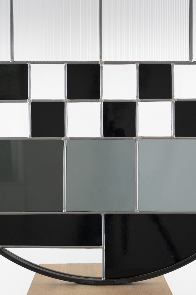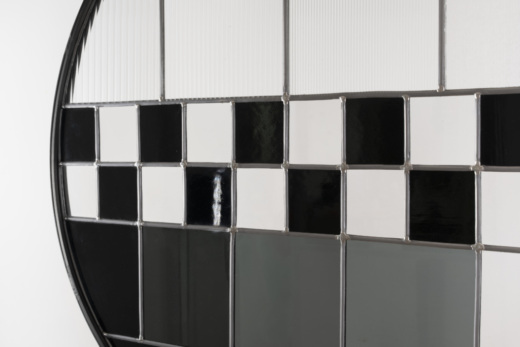 En fixant ce motif technique et profane dans le médium ancestral du vitrail, l’artiste établit un pont entre l’omniprésence des écrans et la quête ancienne de contemplation. Entre le flux et la permanence, entre l’invisible transitoire et ce qui demeure.