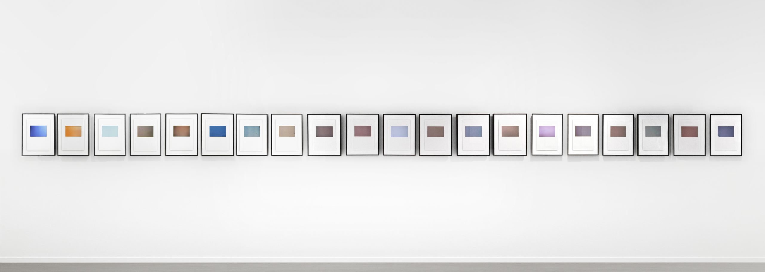 Le processus, séquentiel et infini, fait de chaque photographie l’étalon de la suivante : l’appareil ajuste sa mémoire chromatique en fonction de l’image précédente. Comme dans la logique de l’empreinte , chaque prise dépend de la précédente, tout en la réinterrogeant. Le passé, silencieux, se dépose ainsi sur le présent, l’influence et le modèle.